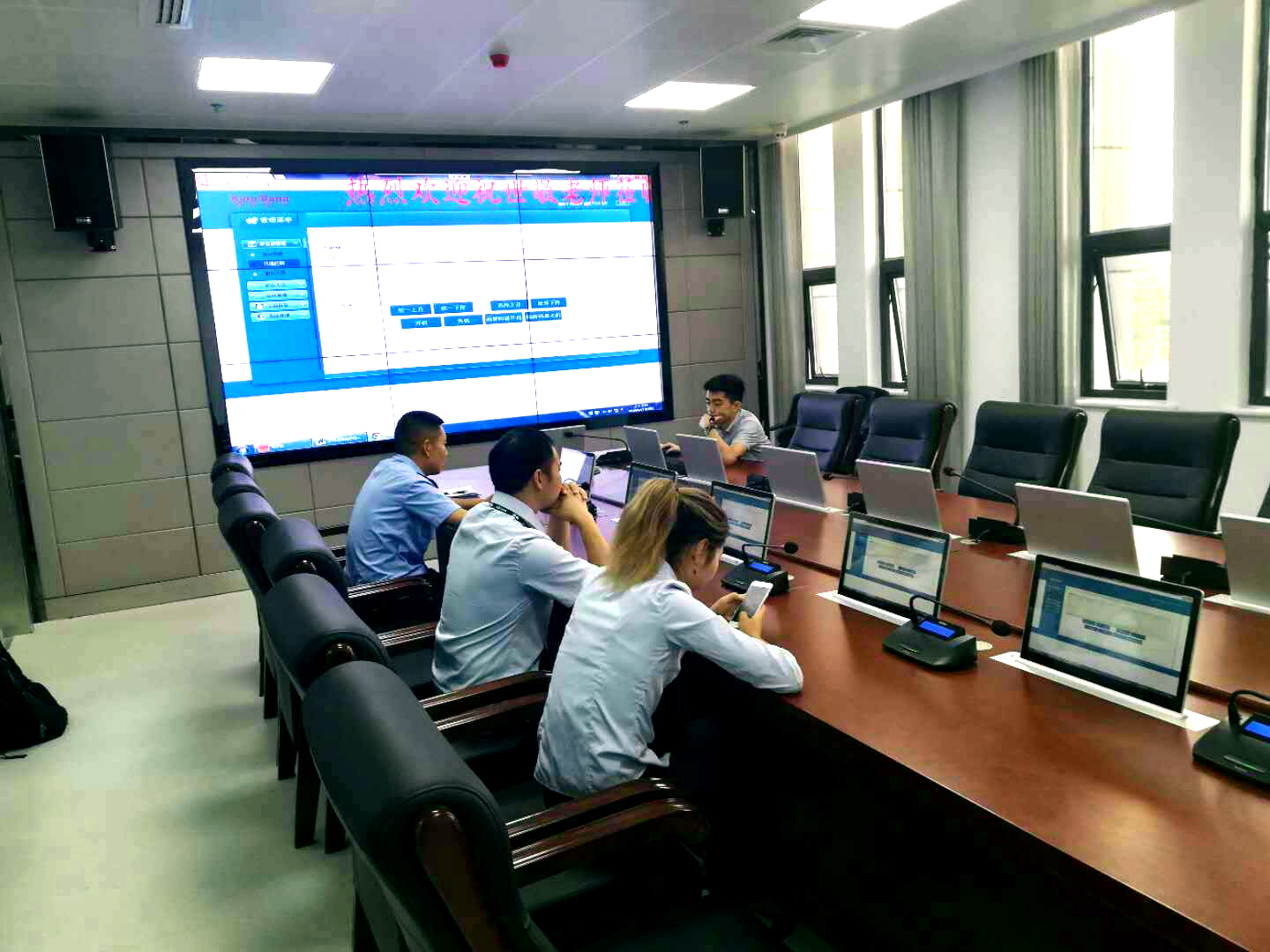 通過現場技術工程師安裝調試,反恐怖情報中心實現了系統一鍵開關機、高清信號互動切換、遠程音視頻切換、自動視像跟蹤、音量控制等等,實現了音視頻及控制方式全智能型,符合當今智能會議控制系統的要求,也得到畢節市公安局各領導的高度認可和好評。